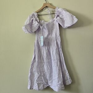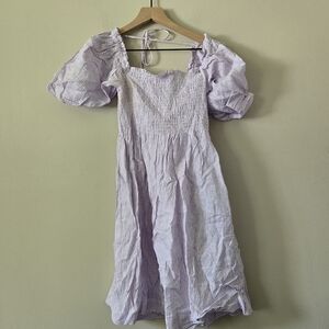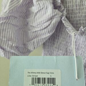 Hill House Athena Midi Sleeve Linen Nap Dress in Lilac Stripe Size Small