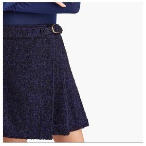 Hill House Blair Midnight Navy Metallic Tweed Pleated Mini Skirt Size Small