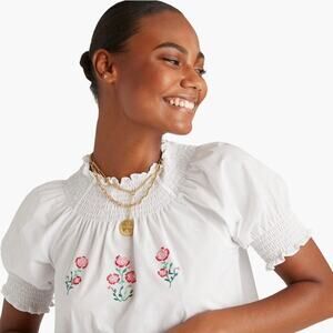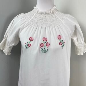 Meet the Nap Dress. It’s Hill Houses garment; soft, comfortable, and pretty enough to wear all day and night. The Caroline is a long Nap Dress with a puff sleeve and smocked neck that can also be worn off the shoulder. The sleeves feature loose smocking. This sheer fabric is lightweight and soft, making it perfect for sleeping. The sleeves are hand embroidered, making each dress one of a kind.