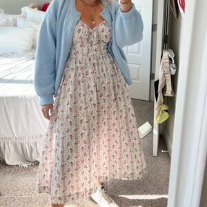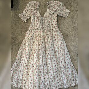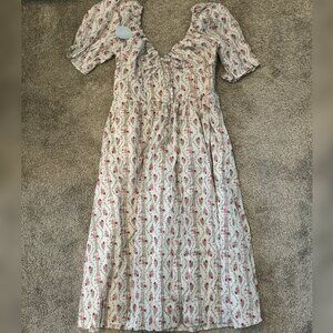 Charming Hill House midi dress. Features floral pattern. Puff sleeves and fitted waist. Perfect for casual outings. Used condition; hand washed and air dried. So cute on! Pet friendly home, smoke free.