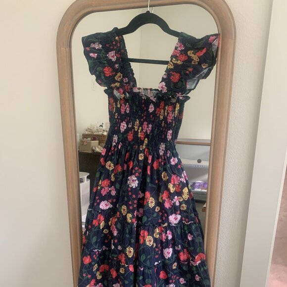 The Ellie Nap Dress-Navy Peony Bouquet Cotton Sateen