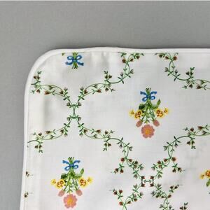 All pieces feature a white base with an elegant floral botanical print in green, yellow, pink, and blue with delicate vines and bouquets