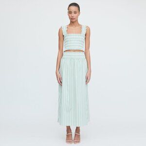 The Delphine Nap Skirt is midi length and has our smocked elasticated waistband for a flexible fit that can be worn high or low on the hips. Pair with your favorite tee or top for an easy, instantly polished look.