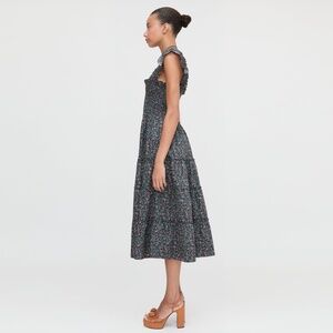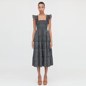 The Ellie is an A-line Nap Dress® with our proprietary, elasticated Nap Smocking™, ruffled shoulders, tiered midi skirt, and pockets.