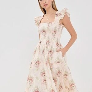 Keywords: Hill House Home, The Ellie Nap Dress, Midi Dress, Floral Dress, Smocked Dress, Ruffle Straps, XXXL, Beige Dress, Pink Dress, Tiered Dress, Cottagecore Dress, Romantic Dress, Summer Dress