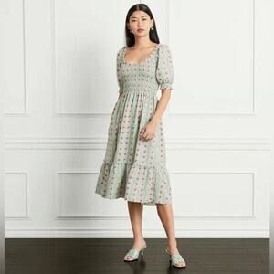 Hill House Home The Louisa Nap Dress Size small, Meet our newest Nap Dress®, Louisa. The Louisa Nap Dress® includes elasticated smocking, a scooped neckline, ruffle hem midi skirt and flexible puff sleeves. Fits both busy schedules and leisurely lifestyles perfectly.