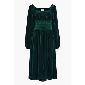 Hill House Jasmine Nap Midi Dress - L - Green Velvet Smocked Holiday Cottage
