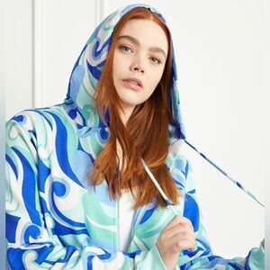 Hill House NWT Allie Zip Up Hoodie with Pockets in Ocean Kaleidoscope Blue XS