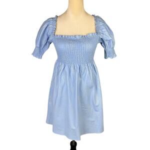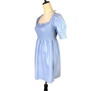 Hill House NWT Athena Nap Dress Light Blue Glitter Check Smocked Mini Babydoll