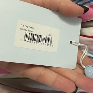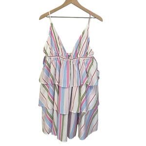 Hill House NWT The Gigi Dress Rainbow Stripe Ruffle Tiered Mini Dress Sz XXL