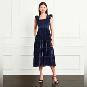 Hill House Navy Velvet Ellie Nap Dress S Holiday Midi Tired Ruched Sleeveless