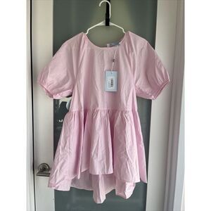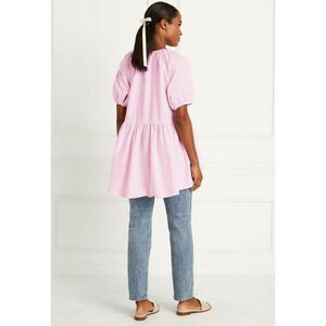 Francesca is a voluminous high-low top with relaxed short sleeves and extra length in the back for more coverage