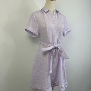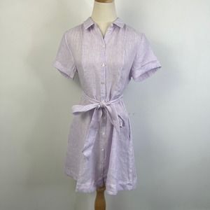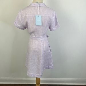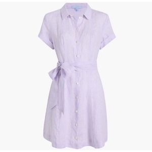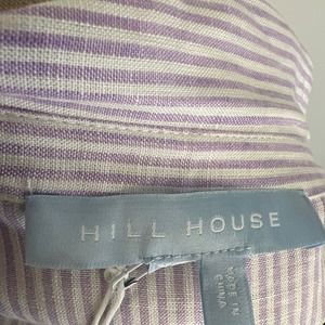 This elegant midi dress by Hill House showcases a rich purple hue, perfect for both casual and work settings. Designed with a Mandarin collar and cuffed short sleeves, it offers a sophisticated yet relaxed style. The A-line silhouette ensures a flattering fit, making it a versatile addition to any wardrobe.