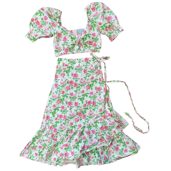 Hill House Size Small Isabella Smocked Crop Top Midi Floral Skirt Prairie Vacay