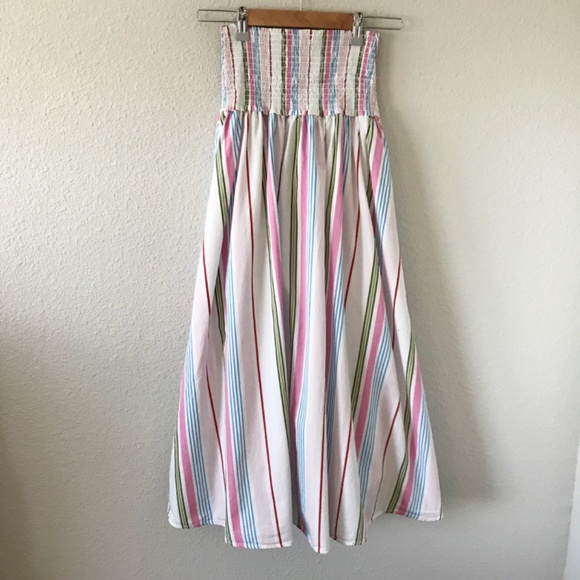 Hill House Smocked 100% Cotton Strapless Rainbow Stripe Midi Dress S A-Line