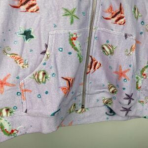 Hill House The Allie Zip Up Hoodie Fleece Jacket Sea Creatures Terry Purple M