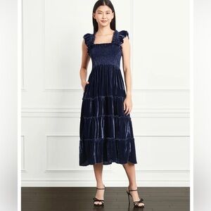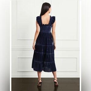 Hill House The Ellie Nap Dress Navy Velvet Blue Smocked Holiday Midi Medium