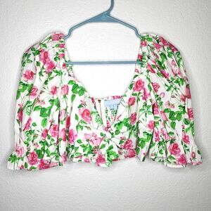 cropped, floral, feminine, beachy, resort, vacay, beachcore, chic, modern, trendy, preppy, cottagecore, peasant, bohemian, girly, girlypop, coquette, brunch