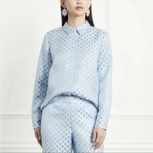 Hill House The James Shirt Snowflake Brocade Blue/White Small