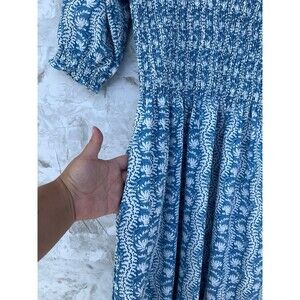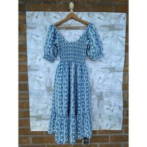 Hill House The Louisa Nap Blue Trailing Vine Crepe Midi Dress size small