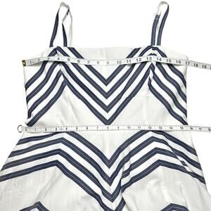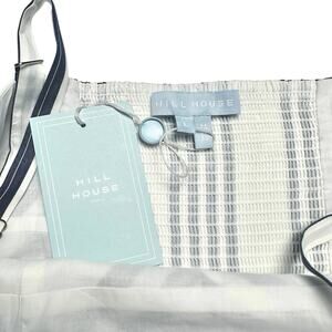 New with tags women’s Hill House The Margot white navy blue diagonal chevron stripe midi fit and flare dress. Features full lining, side zip closure, smocked back, and adjustable shoulder straps.