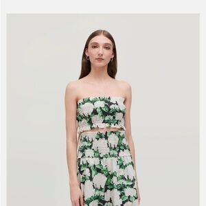 Embrace elegance with this strapless floral dress. Perfect for any occasion, it features a beautiful green and white pattern.
