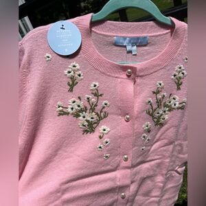 Gorgeous hill house Audrey embroidered cardigan. Never been worn, with tags attached. A feminine cardigan with floral embroidery and pearl buttons. 100% merino wool. Comes with extra pearl buttons.