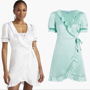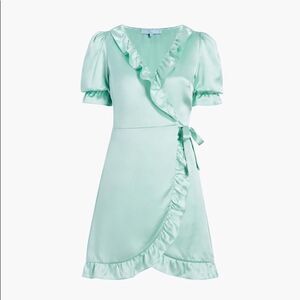 Hill House the Nima Silk Wrap Mini Dress in Mint size L