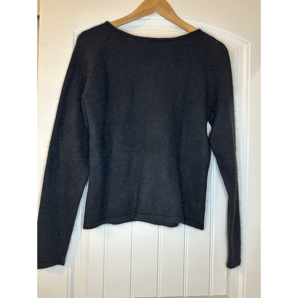 Hillard & Hanson Black Angora Wool Blend Knit Sweater Beaded Sequin Floral SZ L