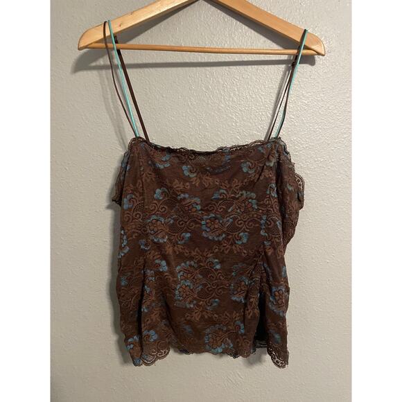 Hillard & Hanson Cami Womens Size 2XL Brown Blue Lace Floral Strappy Fairy Y2K
