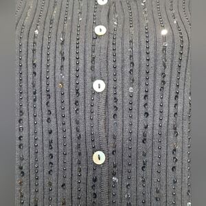 Add something special to your wardrobe with this beautiful vintage 1990's black cardigan sweater. This knit design features eye-catching sequin and beaded detailing, perfect for topping off casual party wear.