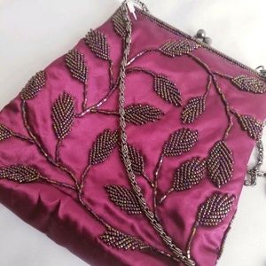 Hillard & Hanson Purple Beaded Purse Gunmetal Chain