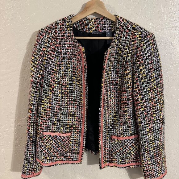 Multicolored long sleeve flattering seems structured open blazer jacket. See pics for more details.