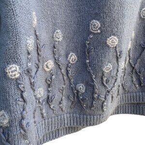 Hillard & Hanson Womens Embroidered Floral Design Beaded Cardigan Sweater New XL
