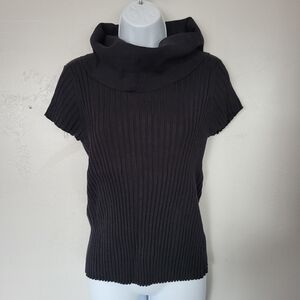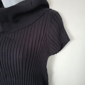 Hillard & Hanson Women's Large Black Short Sleeve Ribbed Turtleneck Blouse Top