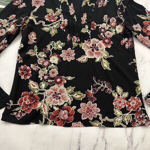 Hillard Hanson Womens Vintage Y2k Mesh Knit Top Size M Black Pink Floral Bell