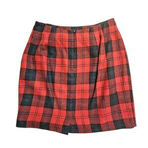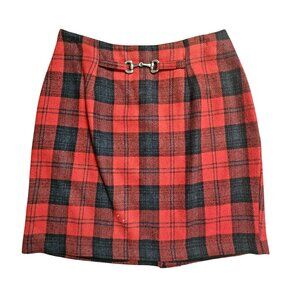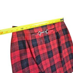 Hillard & Hanson Wool Blend Red Black Plaid Skirt Horsebit 28 Prep Grunge