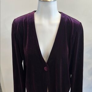 Says XS but it’s oversized on my size small mannequin. This luxurious purple velvet blazer by Hillard & Hanson features a sophisticated design with a plunging V-neckline and a relaxed fit. The soft velvet fabric adds an elegant touch, making it perfect for both formal and casual occasions.