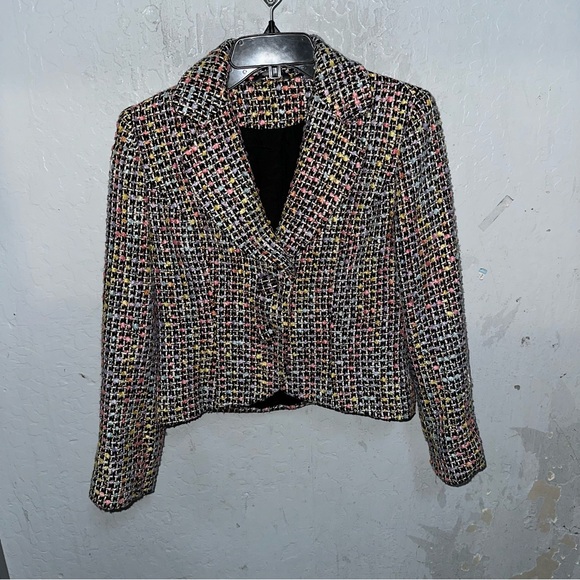 Elevate your wardrobe with this chic multicolor tweed jacket. Perfect for any occasion, it combines style and comfort effortlessly.