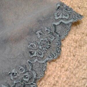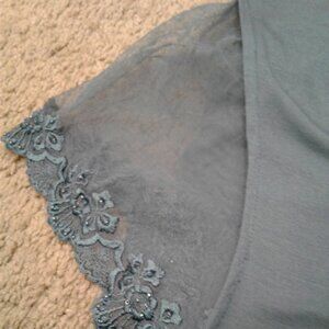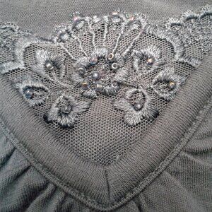 Top has a pretty  Vneck and Sheer Short Sleeves trimmed with floral applique & beading