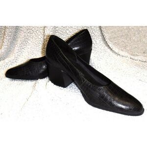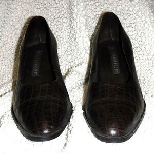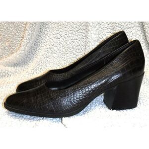 Size 10M, 2 1/2" chunky heels, dark brown leather uppers