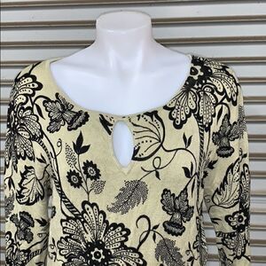 Hillard & Hanson size Large sweater top. Light yellow with black flowers lovely