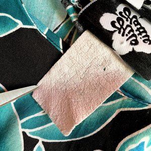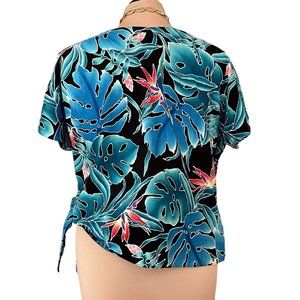 Hilo Hattie Blue Black 100% Cotton Scoop Neck Short Sleeve Blouse with Tie Waist
