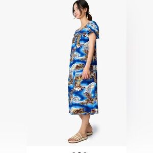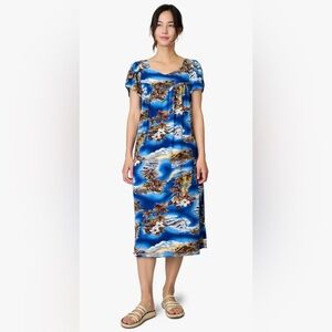 Hilo Hattie Blue Hawaii 3X Made in USA Tulip Sleeve Tropical Muu Muu Dress Beach