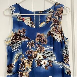 Hilo Hattie Blue Hawaiian Prints Sleeveless Midi Dress