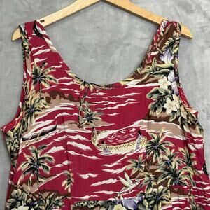 Hilo Hattie Dress Womens Large Red Fujiette Print Tropical Midi Pleated Pockets