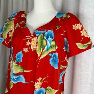 Tropical Hilo Hattie Red Floral Maxi Dress Women’s L Made in Hawaii Aloha Luau Fit