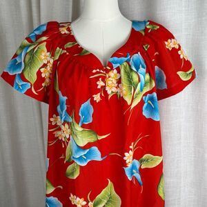 Bright, bold, and made for the islands — this Hilo Hattie red floral maxi dress features a striking allover tropical flower print in vibrant blues, greens, and yellows. Made in Hawaii from imported fabric, this piece captures authentic island style with its breezy shape and statement color palette. Lightweight and easy to wear, it’s perfect for summer getaways, luaus, beach weddings, or vacation evenings. The relaxed fit and vivid print bring effortless aloha energy wherever you go.