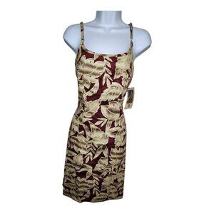 Hilo Hattie Hawaiian Dress Size 10 NWT Burgundy Beige Floral 100% Cotton
