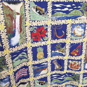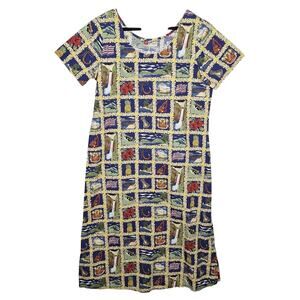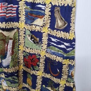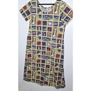 Hilo Hattie Hawaiian Maxi Dress Large Novelty Ukulele Short Sleeve Cotton Aloha